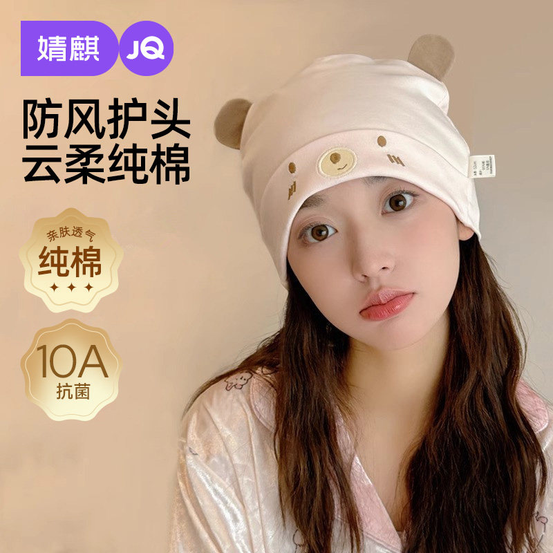 婧麒月子帽春夏薄款防风护额纯棉产妇帽大头围产后孕妇帽子四季款