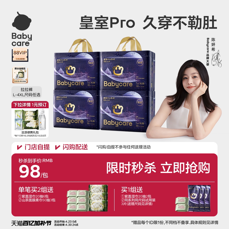 【全方位裸感】babycare皇室pro裸感拉拉裤宝宝婴儿尿不湿4包装