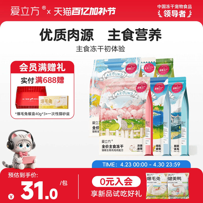 爱立方冻干猫粮猫零食鸡肉鸭肉鹌鹑牛肉猫咪零食幼猫成猫粮生骨肉