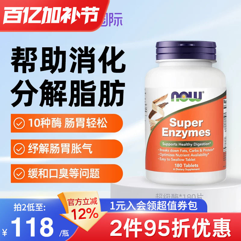 nowfoods诺奥美国进口超级消化酶胶囊全谱复方成人调理肠胃片正品
