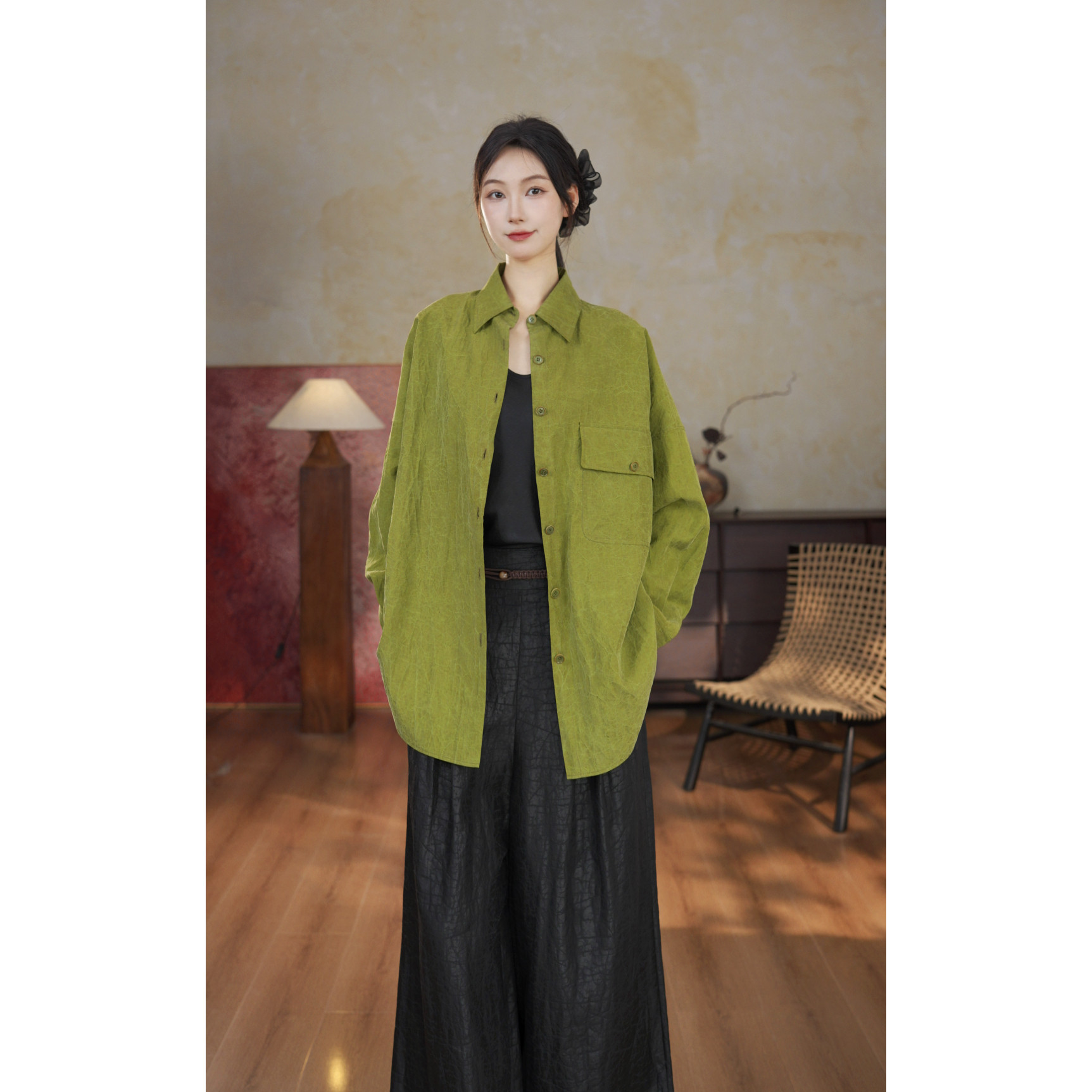 【兰韵】桑蚕丝香云纱灯笼袖男友风简约宽松休闲百搭衬衫20655079
