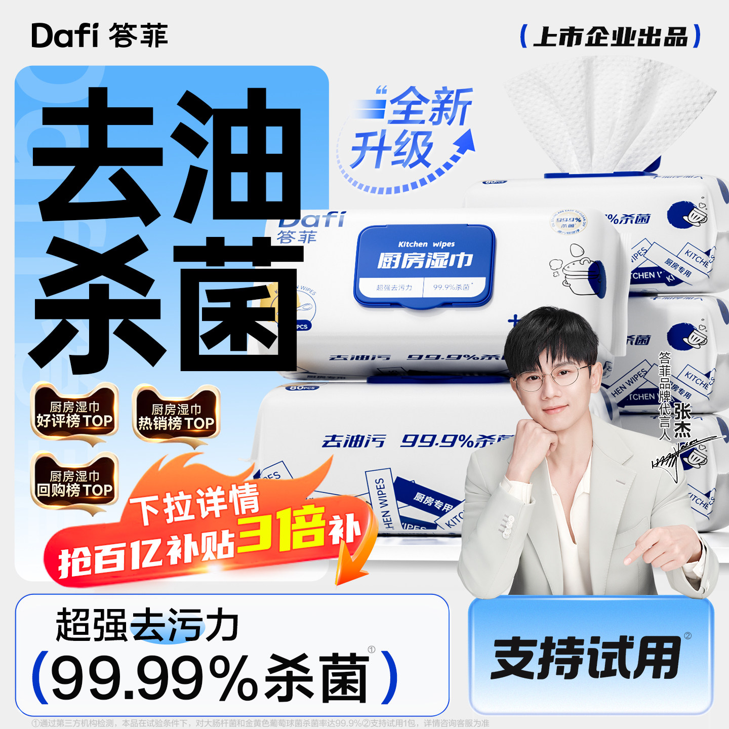 答菲厨房湿巾去污去油家用加大加厚强力去油污专用抹布清洁湿纸巾