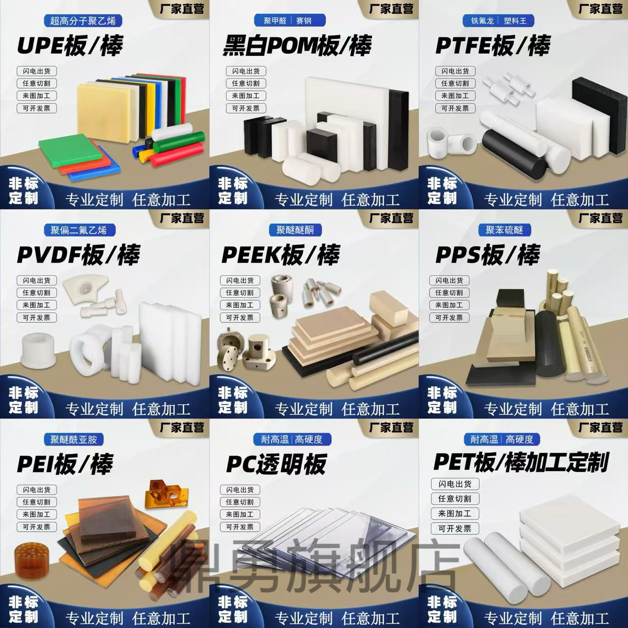 进口PEEK板棒黑色PEI板PET棒加纤PPS板尼龙UPE板POM棒PTFE板PC板