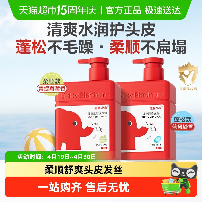 红色小象儿童洗发水蓬松柔顺女孩专用0-6到12岁男童氨基酸洗头膏