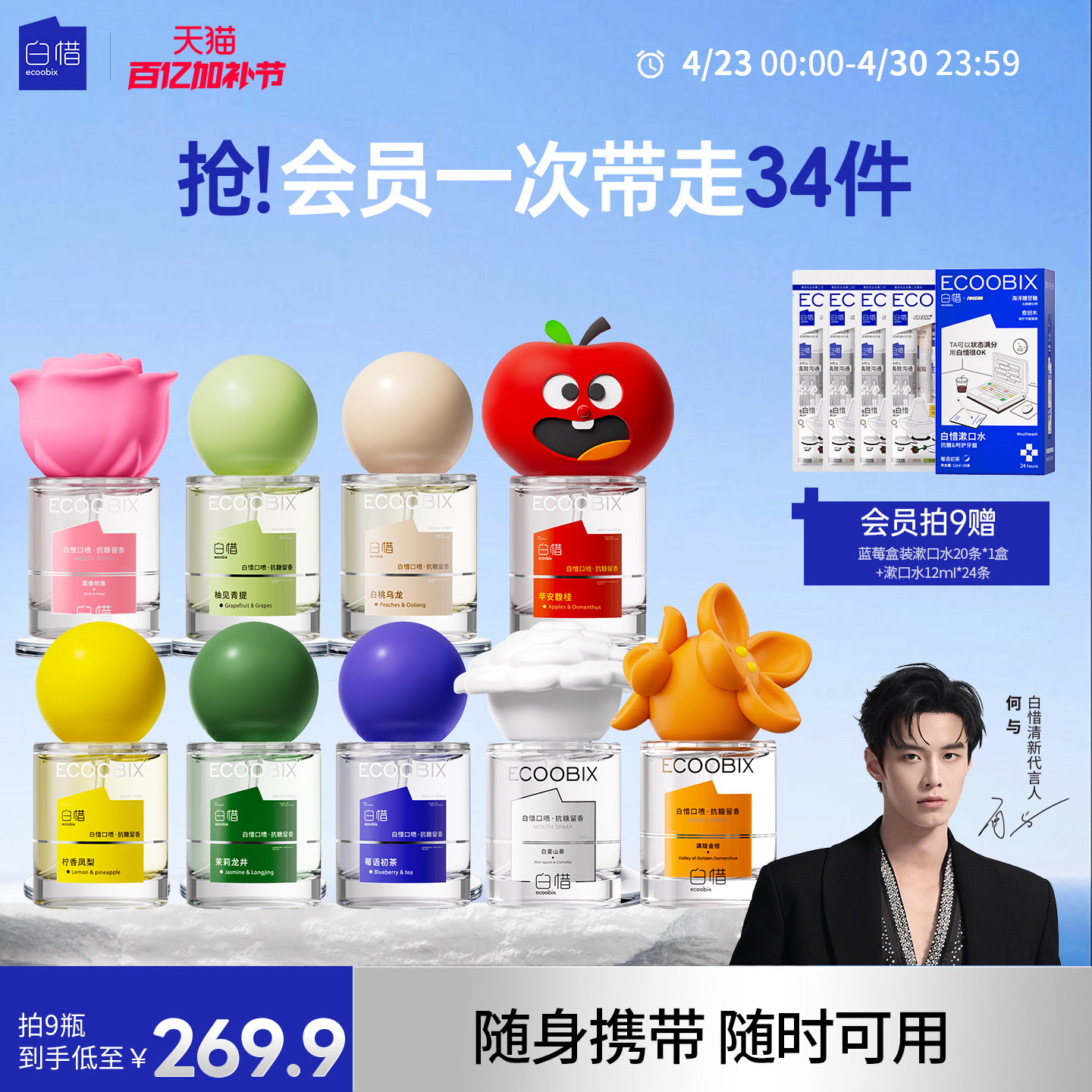 【何与推荐】白惜口喷口腔清新喷雾香氛口气清新持久留香便携小瓶