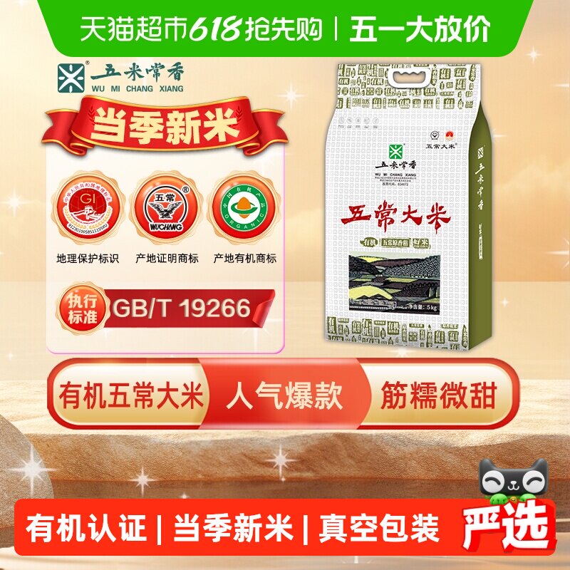 五米常香有机米五常大米5kg东北大米粳米一级真空锁鲜当季新米