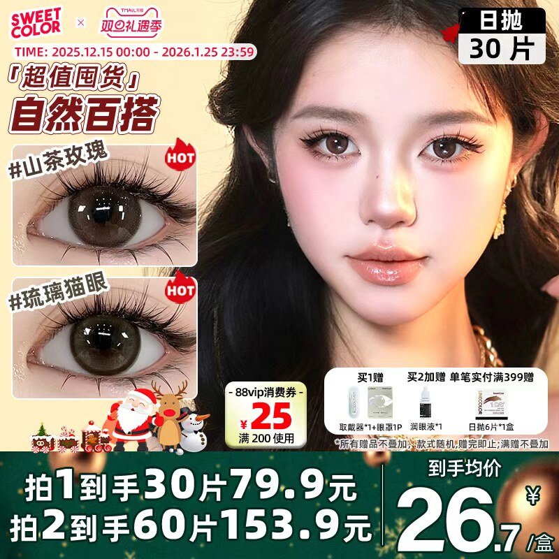 SweetColor美瞳日抛30片素颜党自然高颜值哭哭黑山茶玫瑰隐形眼镜