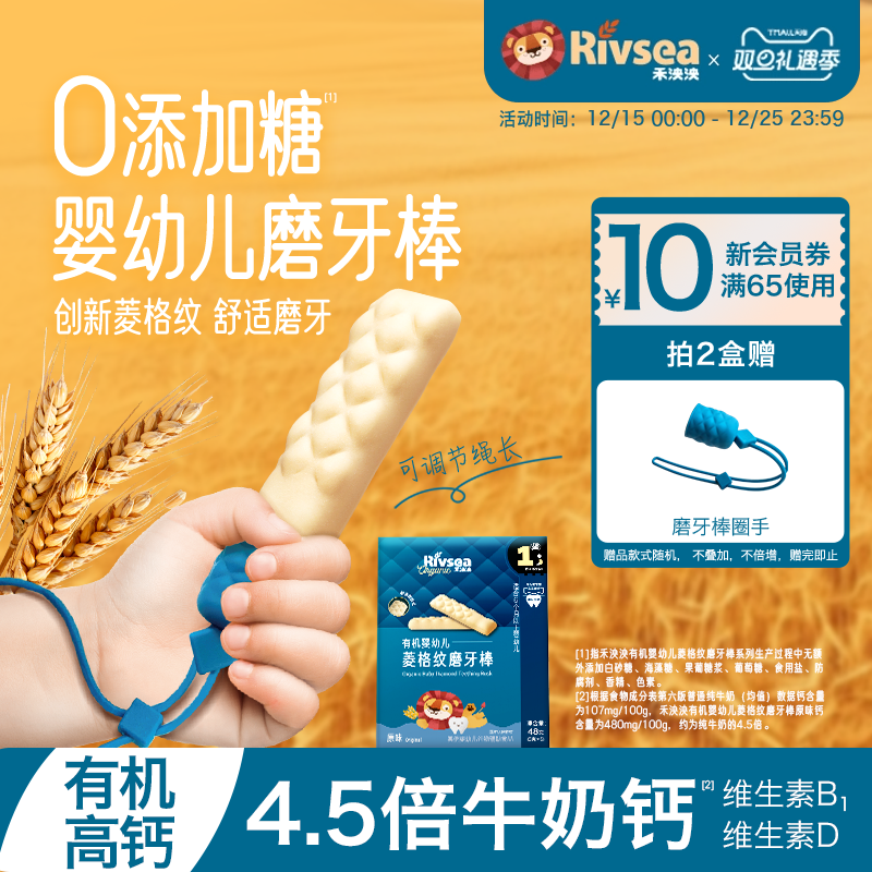 禾泱泱宝宝有机菱格纹磨牙棒防掉绳 零辅食磨牙饼干婴幼儿6个月+