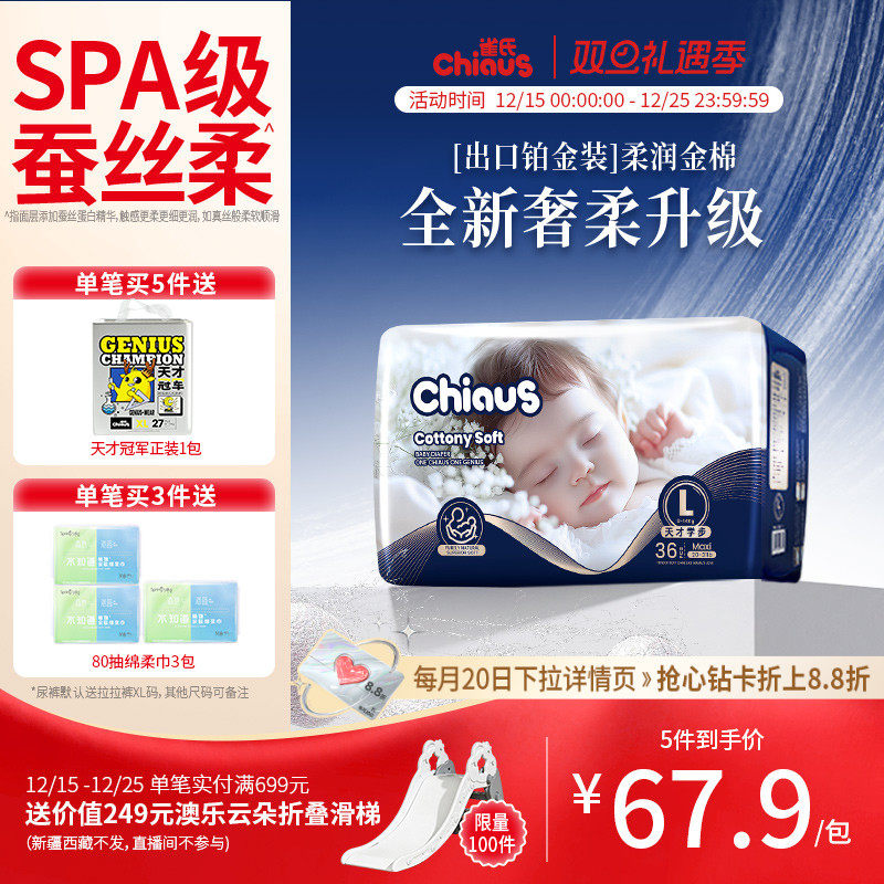【添加蚕丝蛋白】雀氏出口铂金柔润金棉尿裤NB-3XL超薄透气拉拉裤