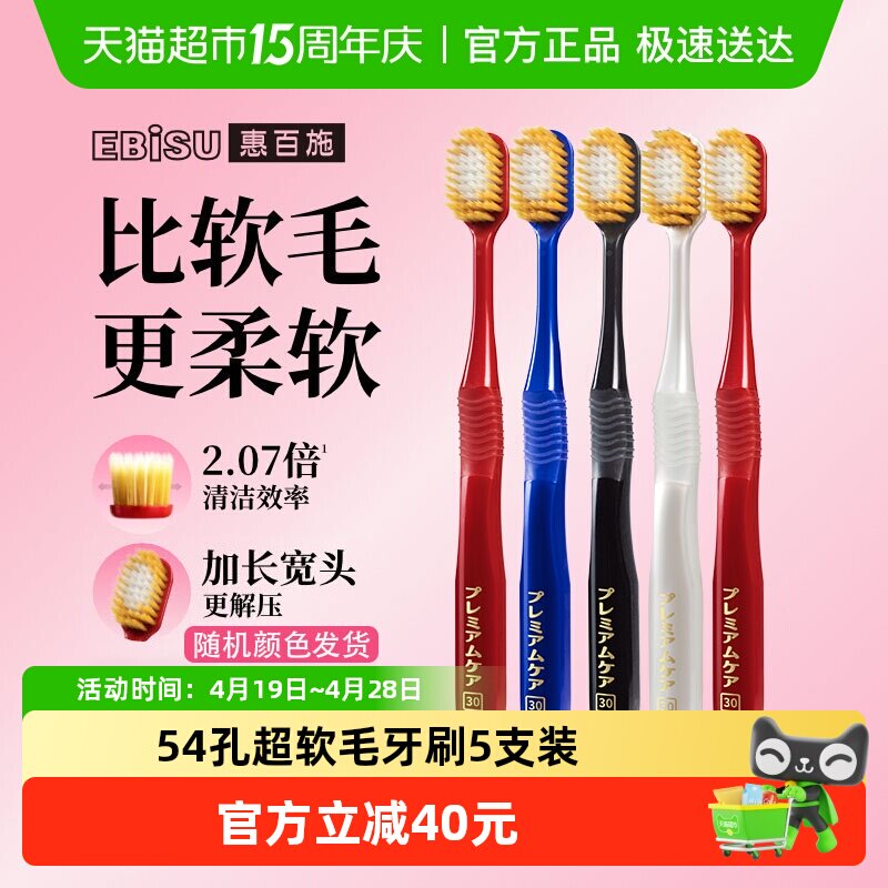 (颜色随机)惠百施日本进口宽头护龈牙刷超软毛54孔5支成人组合