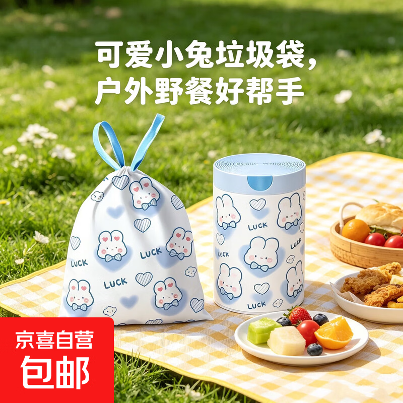 户外旅行高颜值可爱卡通蓝心兔抽绳式家用厨房手提式加厚垃圾袋 蓝心兔约100只