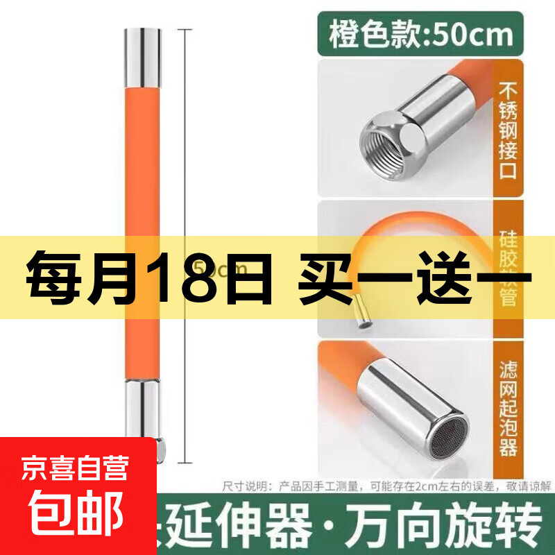 水龙头延伸器洗菜洗脸盆增压防溅起泡神器厨房通用可旋转 橙色50cm延长管+万能接头